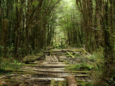 The route flattens out significantly from La Junta, gone are the days of endless climbs and descents, and covering distance on the map is significantly easier, despite the mud. Amazingly, the path actually gets wetter here than in the rainforest. The trenches and horse corrugations continue - except now there is no guarantee that the peaks will hold up a fully loaded hiker. Be prepared for slipping and sliding. Part of the reason the path is so worn is the existence of 'Camp Aventura'. They are a tour business with a backcountry outpost and a road-end hotel/campsite that organizes horse treks, kayaking and other outdoor adventure sports. Their backcountry site out is reached along this path by horse from the gravel road, so it gets a fair amount of use compared to further towards Argentina. The flip side of the wear and tear they inflict on the path is that most of the log boardwalk here was probably laid by them. On the trail we met two Campo Aventura horse guides - they were both exceptionally personable and seemed like they would provide excellent tours, we enjoyed speaking english and swapping notes on trail conditions.